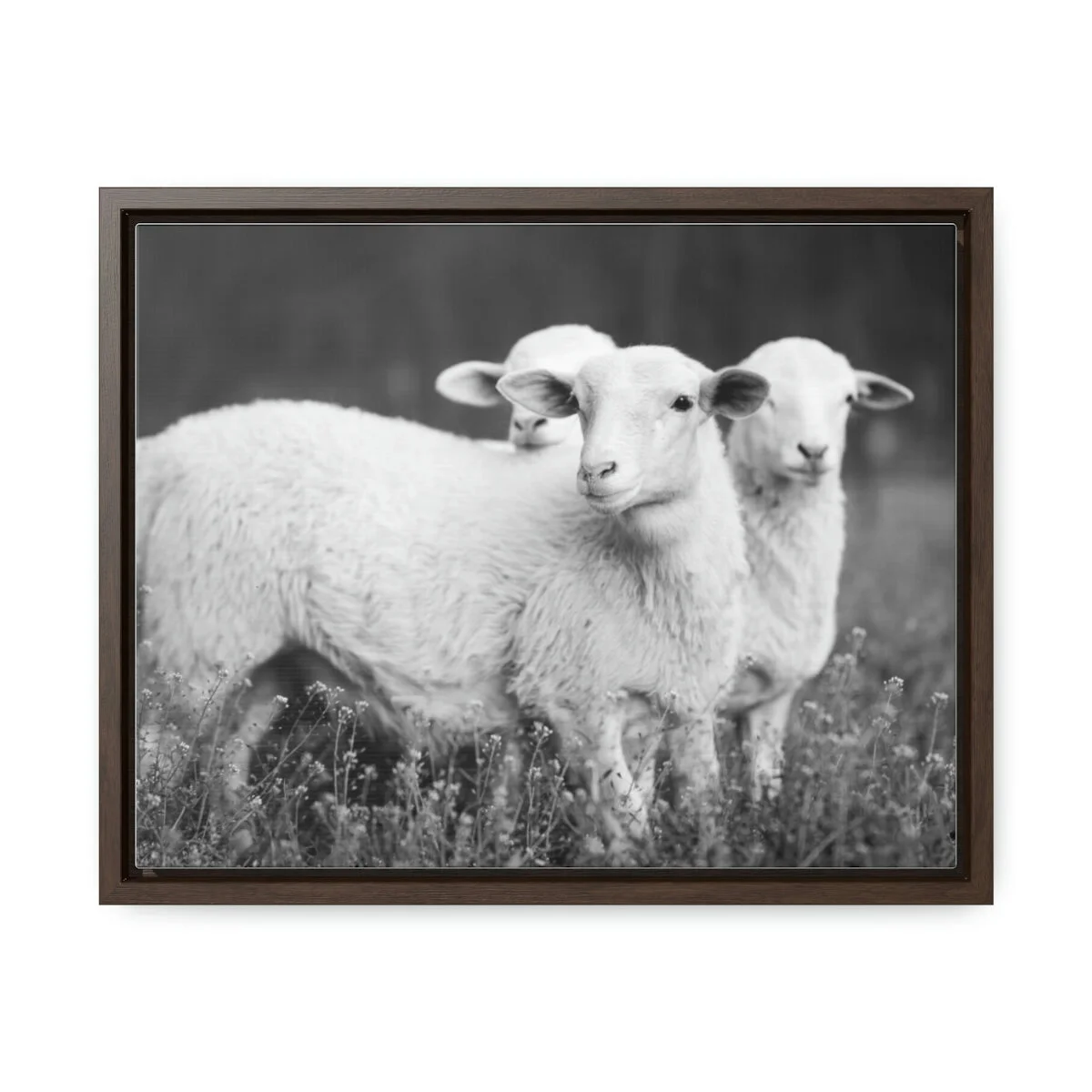 Grazing dorper sheep taken by Lindsay herself. Every frame is built with a solid face to support the canvas and prevent deforming. Available in multiple sizes, comes in walnut and black frame options.